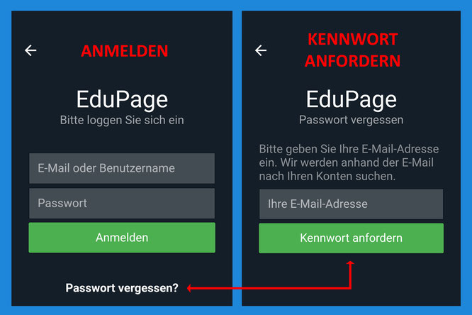 Wenn Sie kein Passwort haben, klicken Sie bitte auf "Passwort vergessen" und verwenden Sie die E-Mail-Adresse, die Sie im Schulsystem hinterlegt haben. Ihr Konto bei EduPage ist mit dieser E-Mail-Adresse eingerichtet bzw. verknüpft.